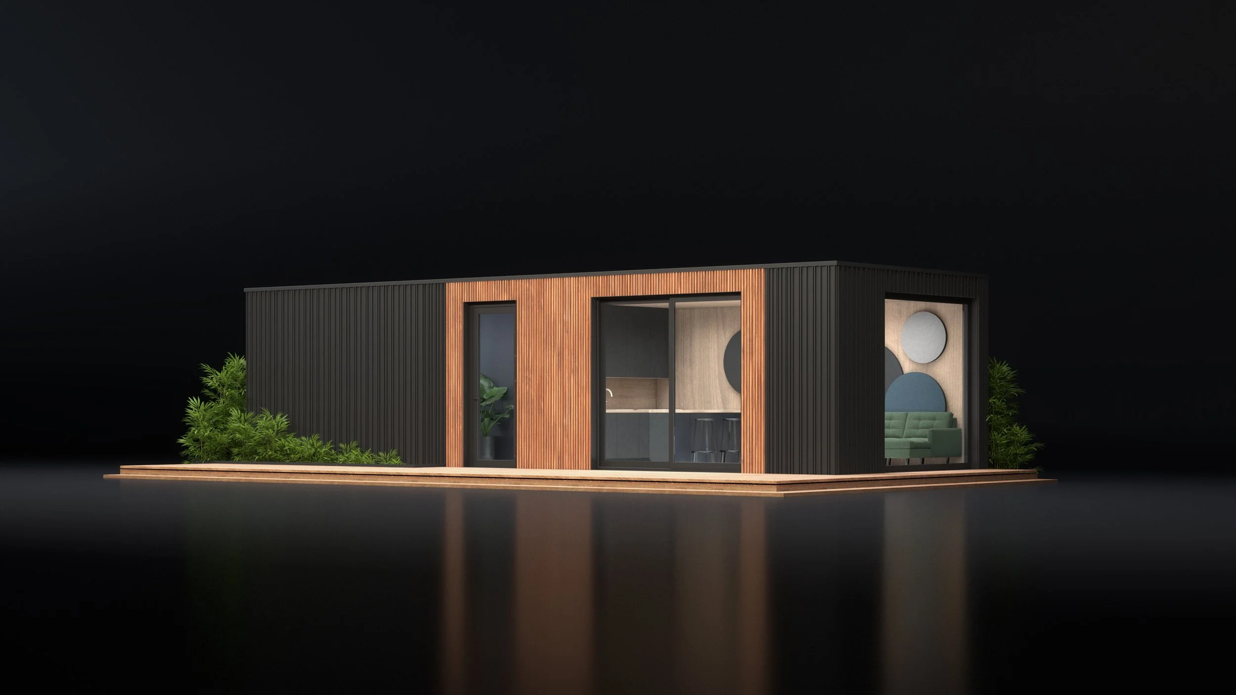 The primary goal of the module is to offer an elegant alternative to the NATUR product, while still providing a functional space that reflects contemporary needs. Its design is based on a minimalist approach, incorporating natural elements to combine aesthetics with practical use.