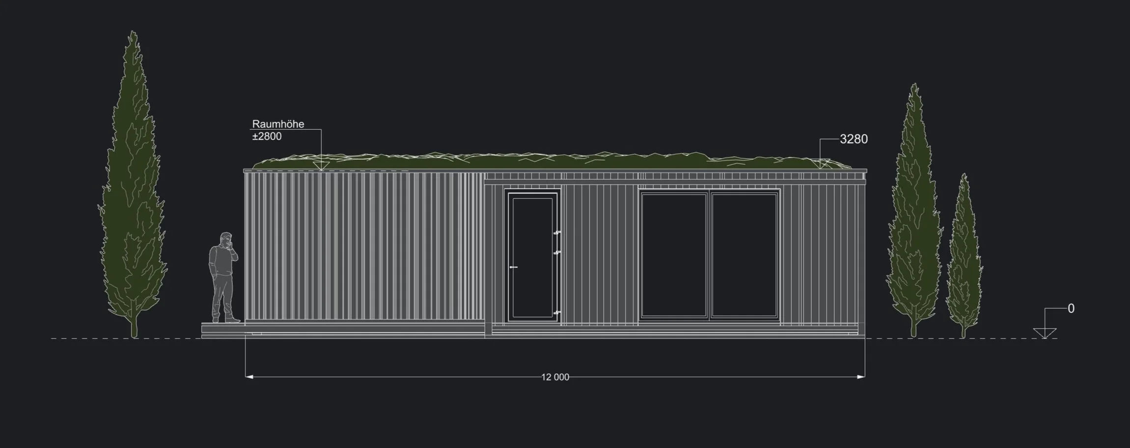 The client's request was to create an innovative modular structure designed for short-term accommodation, which could serve as lodging in the style of a motel or for quick temporary housing. This flexible and practical construction is designed to provide comfortable and efficient accommodation for individuals.